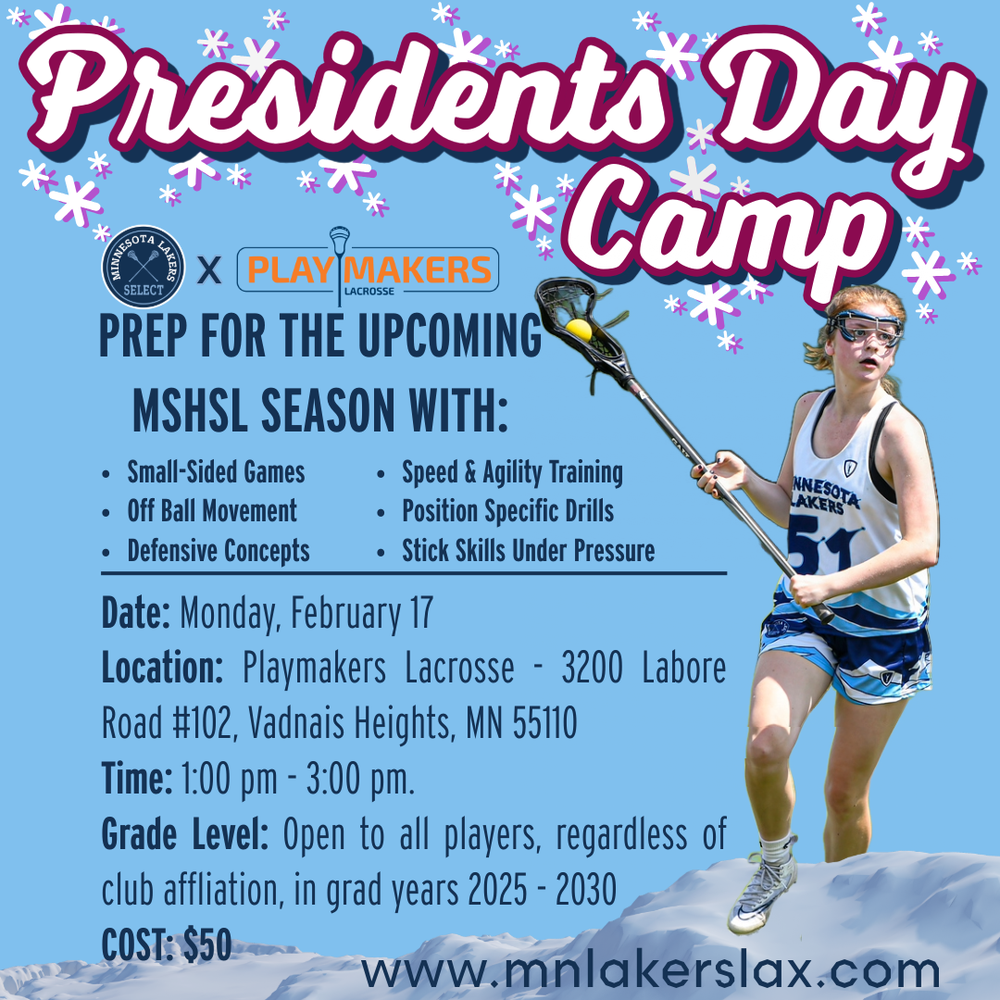 Get ready to elevate your game this Presidents’ Day. Our clinic is designed to focus on every aspect of what makes a complete player—speed, strength, and skill. From explosiveness and agility to decision-making and precision, this is your chance to take every rep with purpose. Combining intense conditioning with high-rep lacrosse skills work, this clinic bridges preparation and opportunity, setting the stage for your best season yet.